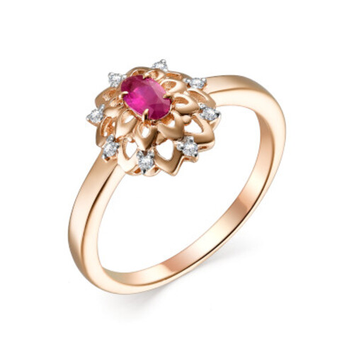 Кольцо из красного золота с рубином и бриллиантами 022865