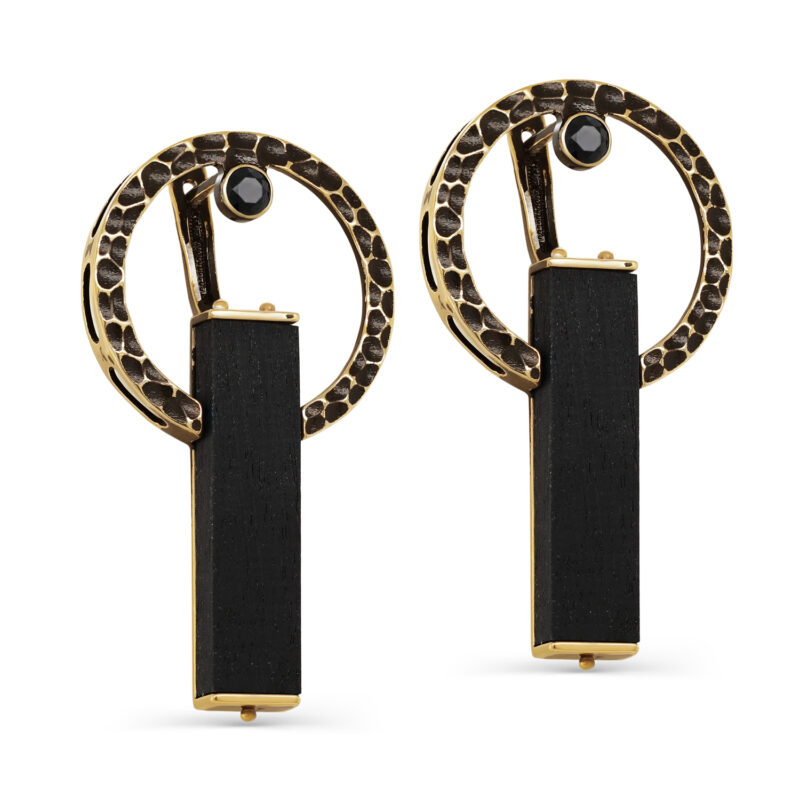 Серьги из серебра с деревом граб, фианитами и эмалью