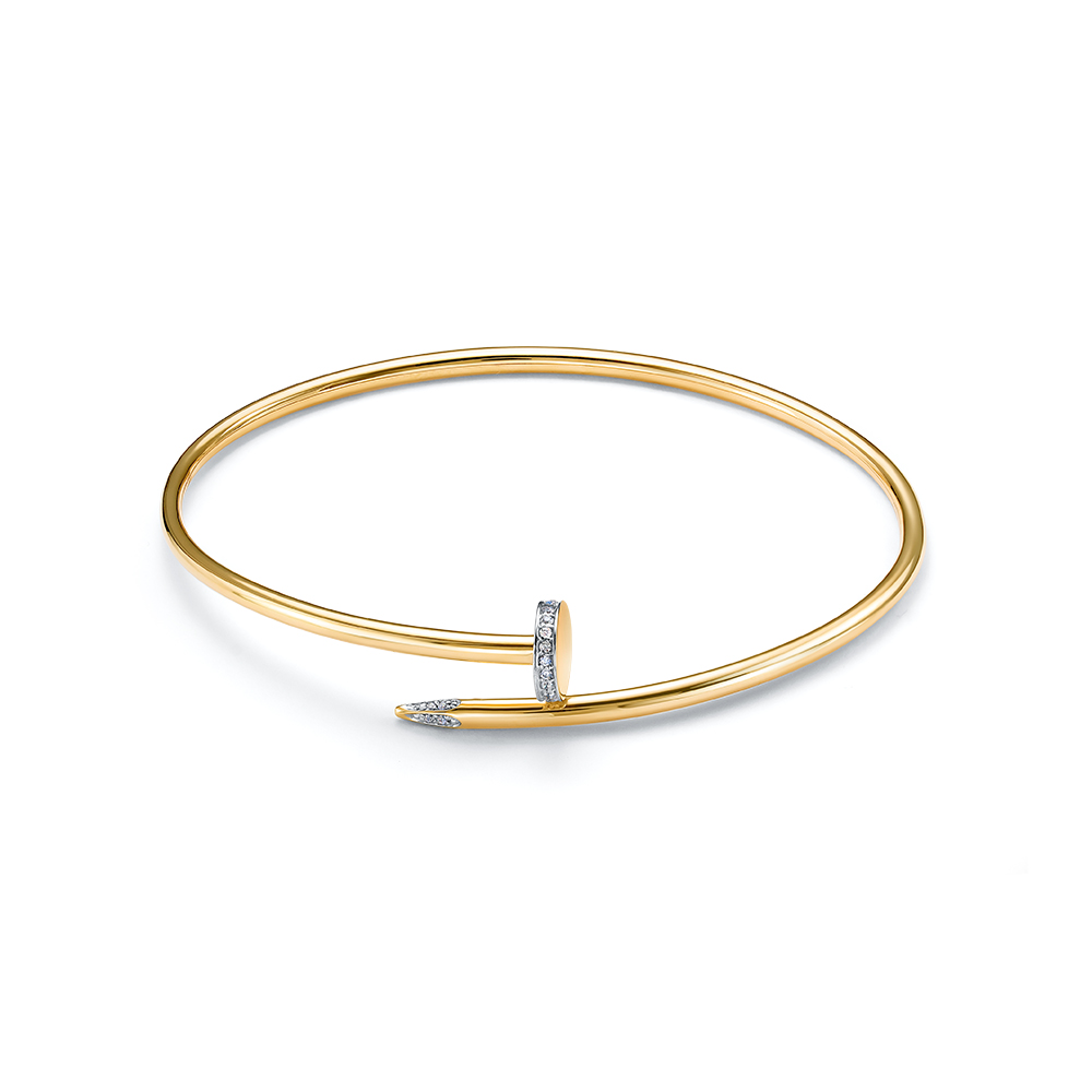 Браслет жёсткий из жёлтого золота с фианитами 029417