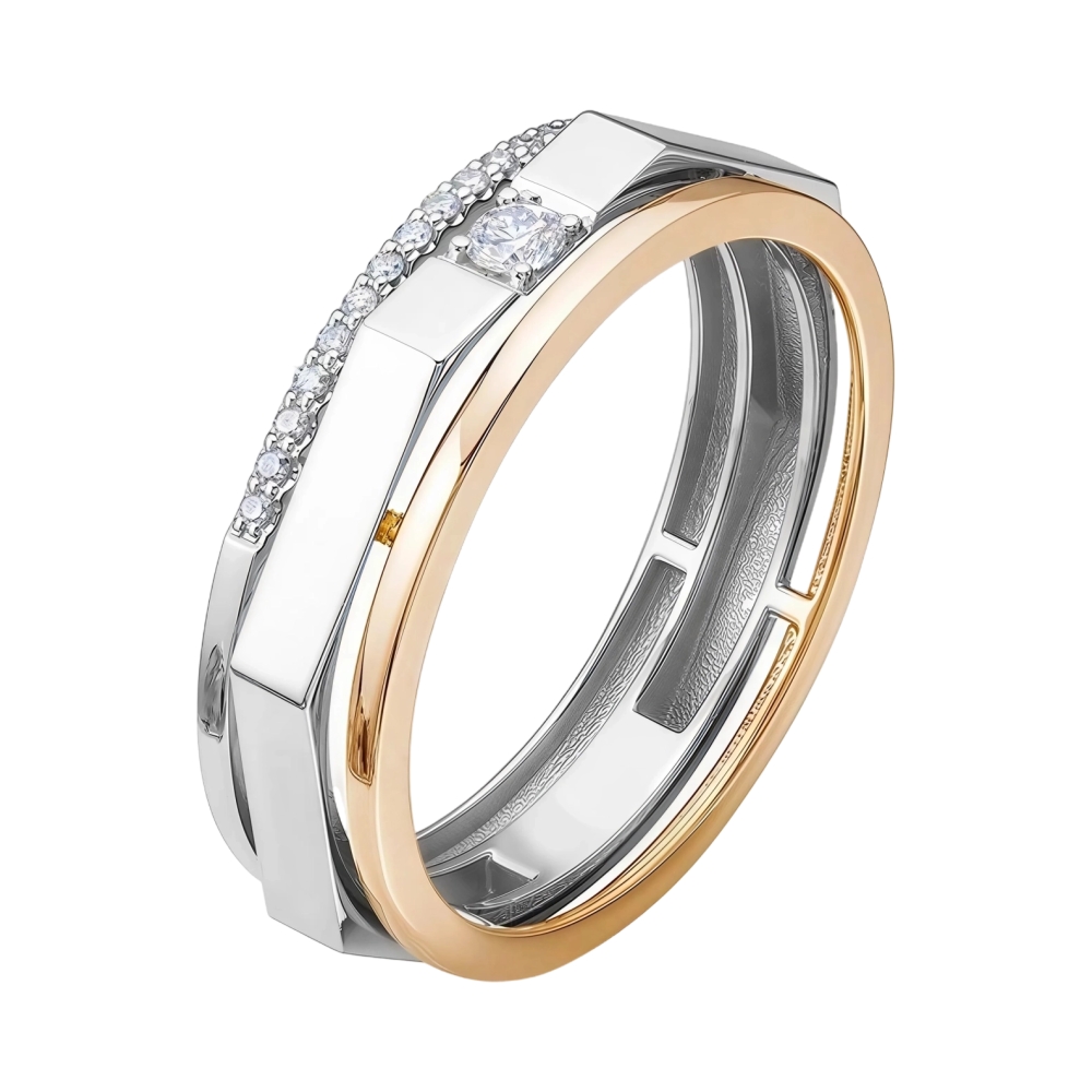 Обручальное кольцо из комбинированного золота с бриллиантами 030224