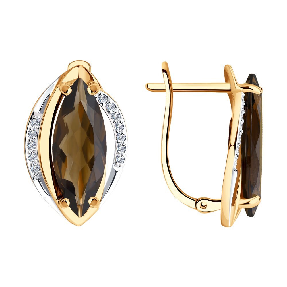 Серьги из красного золота с раух-топазами и фианитами 031797