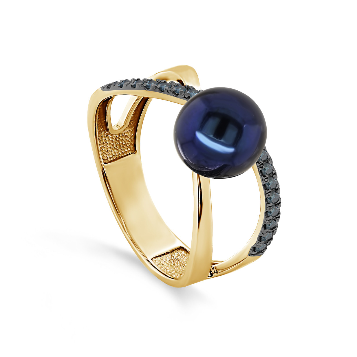 Кольцо из жёлтого золота с бриллиантами и жемчугом