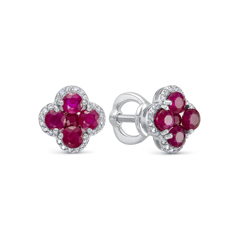 Серьги в белом золоте с рубинами и бриллиантами 033021