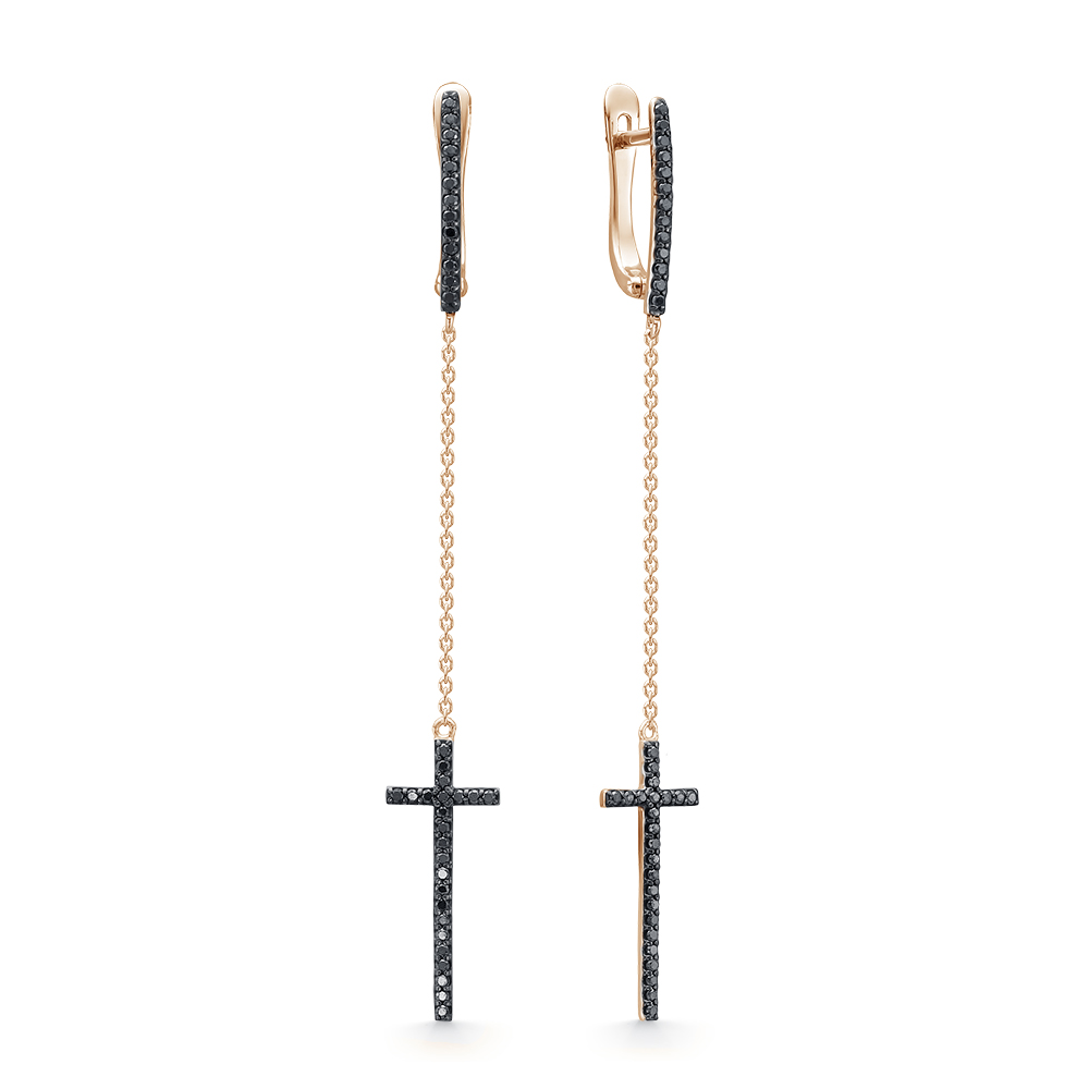 Серьги из жёлтого золота с чёрными бриллиантами 034268