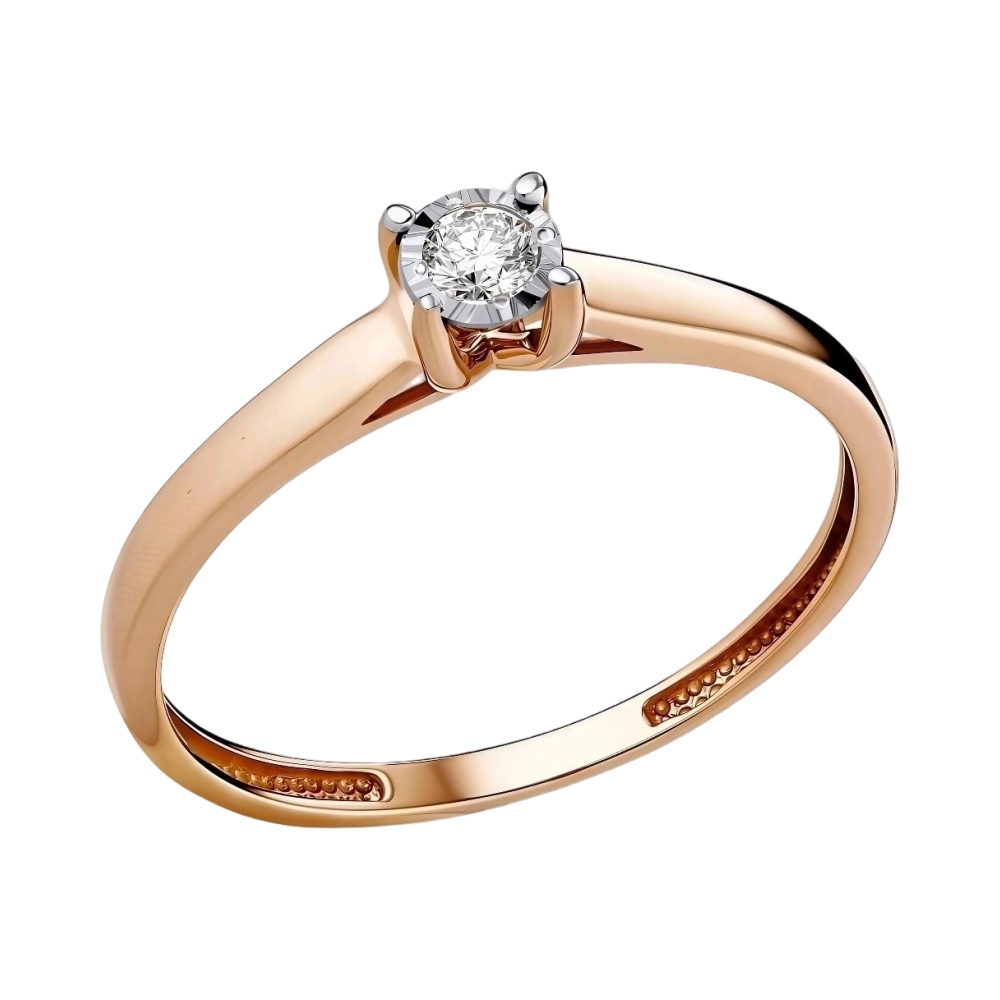 Кольцо помолвочное из красного золота с бриллиантом 034401