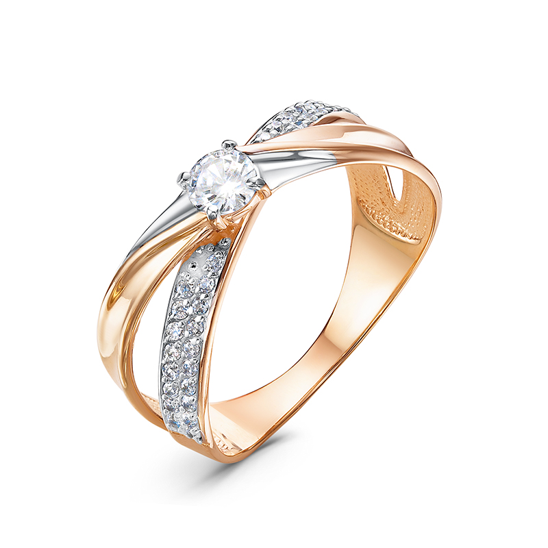 Кольцо из красного золота с фианитами 034460
