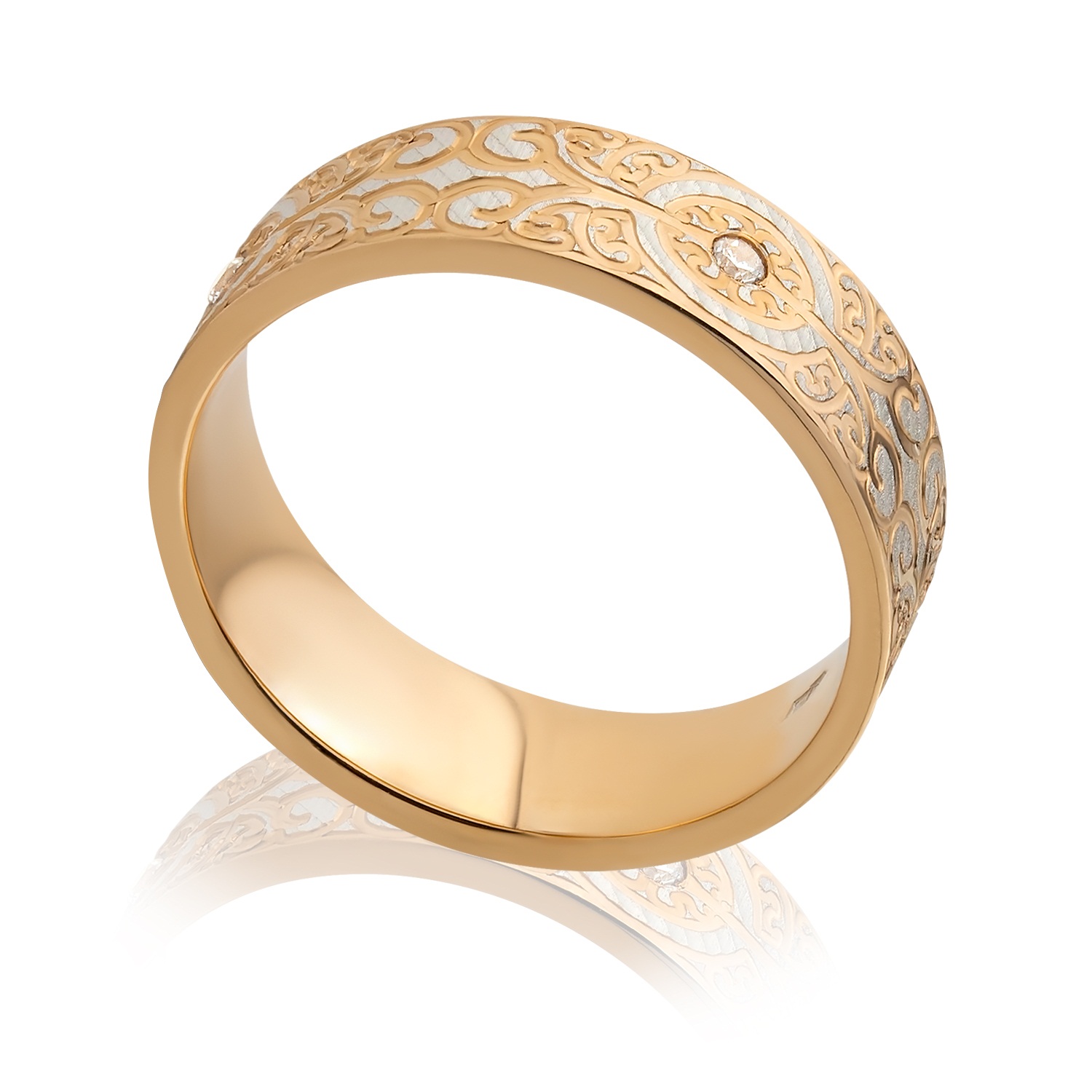 Обручальное кольцо из комбинированного золота с фианитами 035269