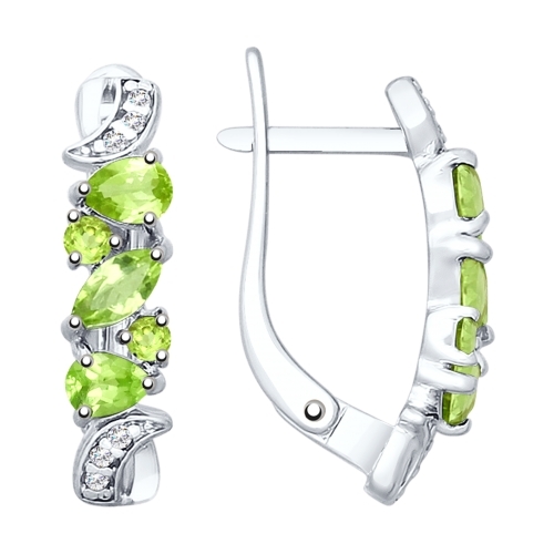 Серьги из серебра с хризолитамими и фианитами 065965