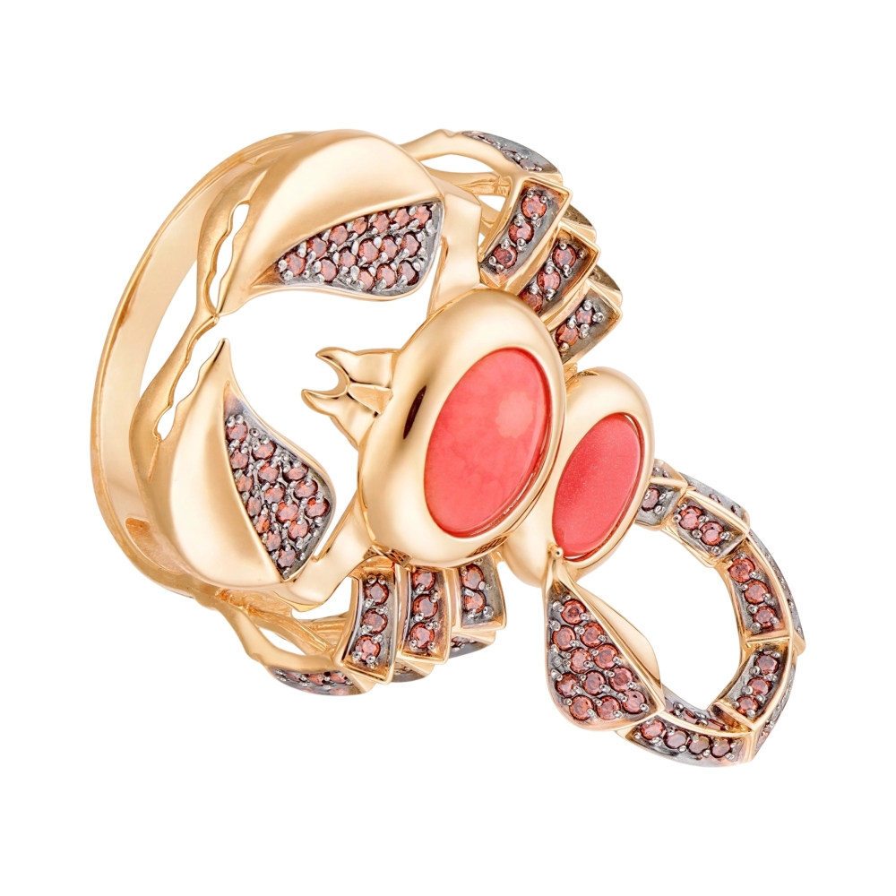 [NAME] => Кольцо из красного золота с зелёным агатом и фианитами