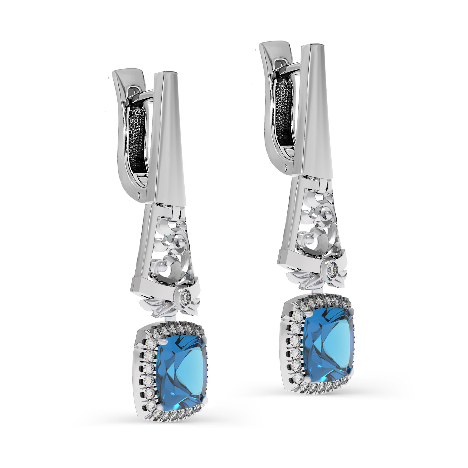 Серьги из белого золота с топазами и бриллиантами
