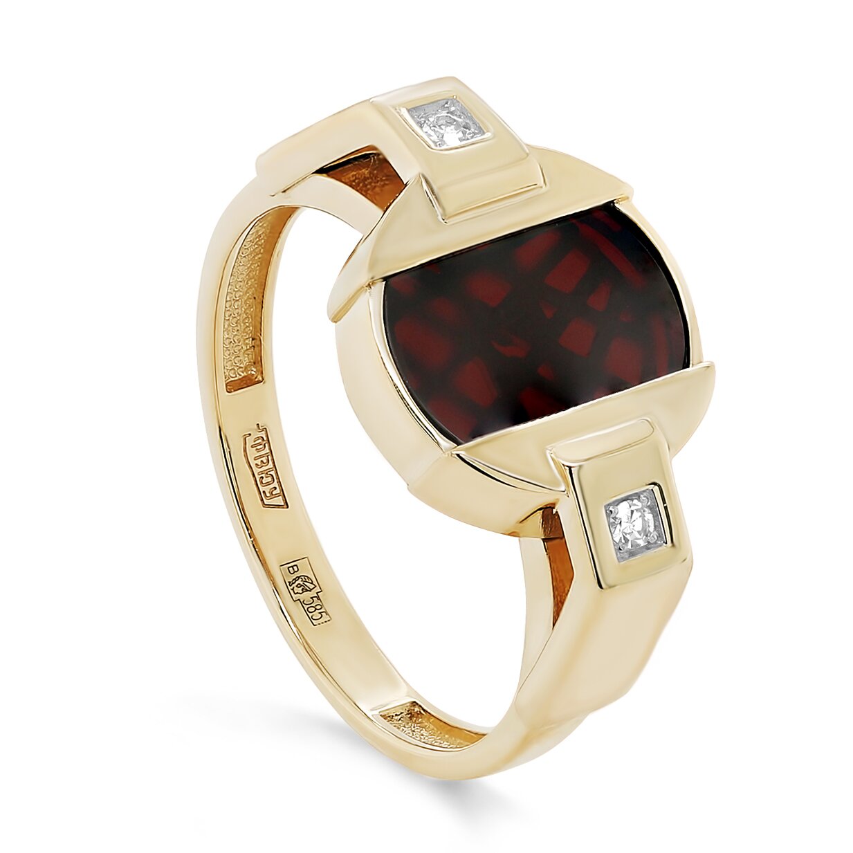Кольцо из жёлтого золота с гранатом и бриллиантами 071208