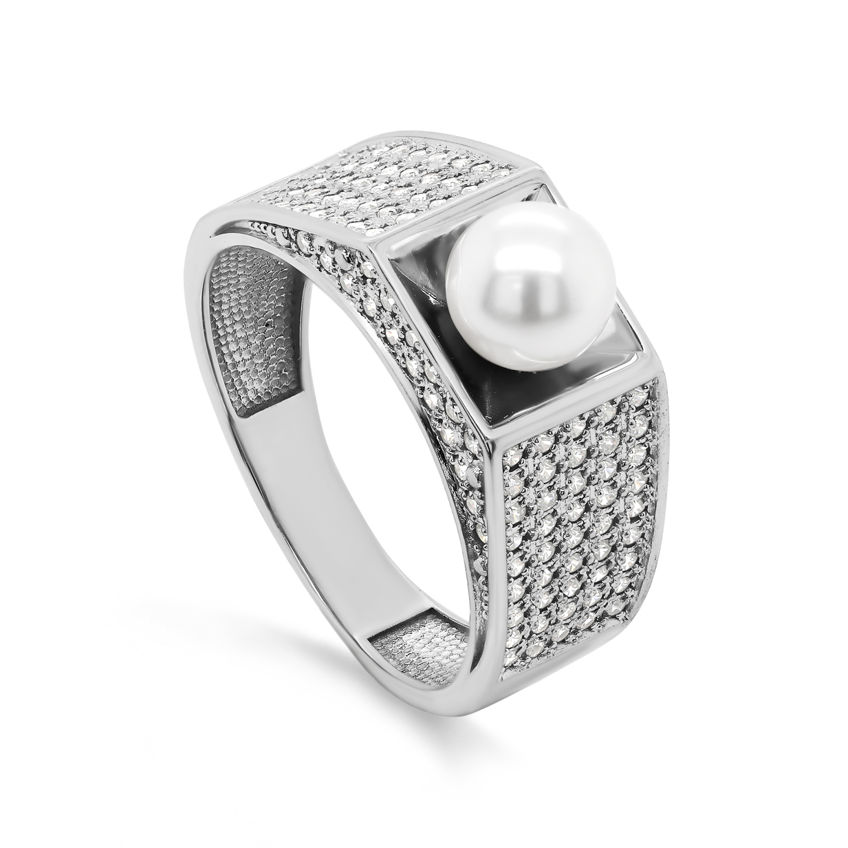 Кольцо из серебра с жемчугом и фианитами