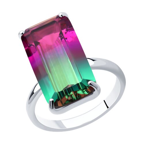 Кольцо из серебра с ситаллом зелено-малиновым 075650