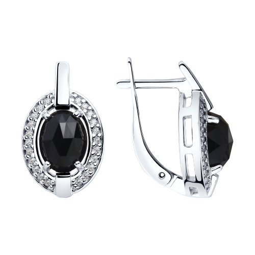 Серьги из серебра с чёрными агатами и фианитами 081649