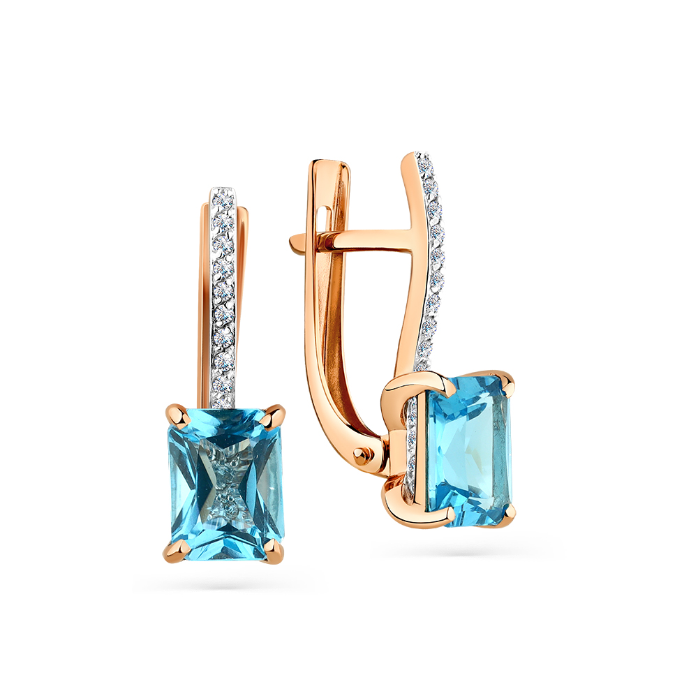 Серьги из красного золота с топазом и фианитами 083589