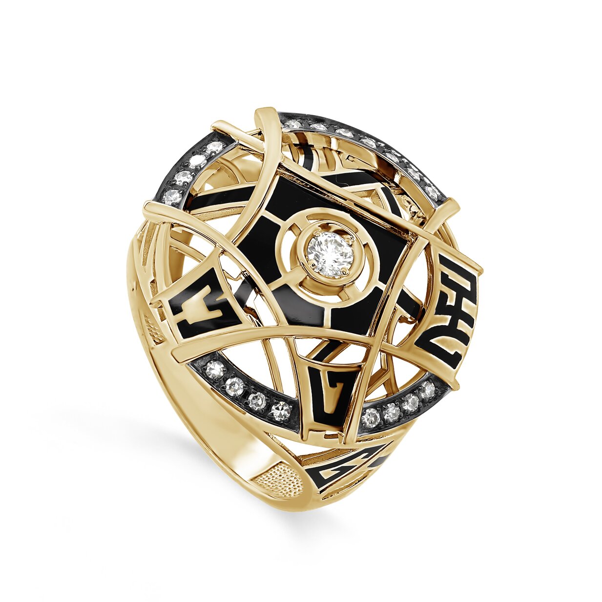 [BROWSER_TITLE] => Кольцо из жёлтого золота с бриллиантами и холодной эмалью - купить в ювелирном магазине