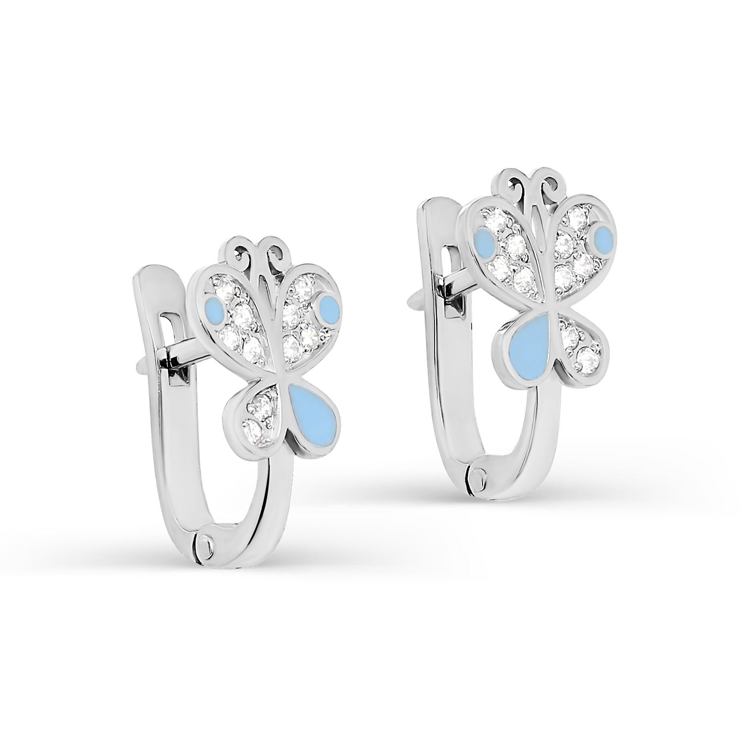 Серьги из серебра с фианитами и эмалью