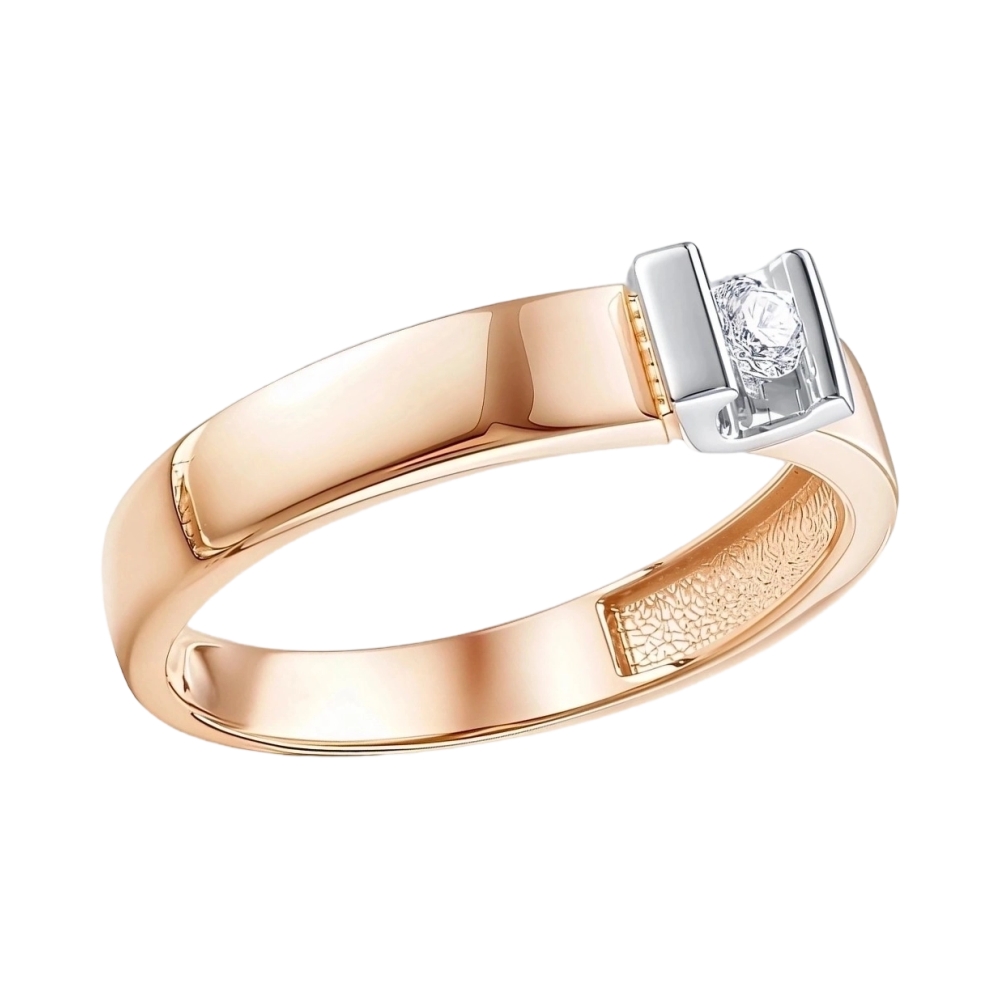 Кольцо помолвочное из комбинированного золота с бриллиантом