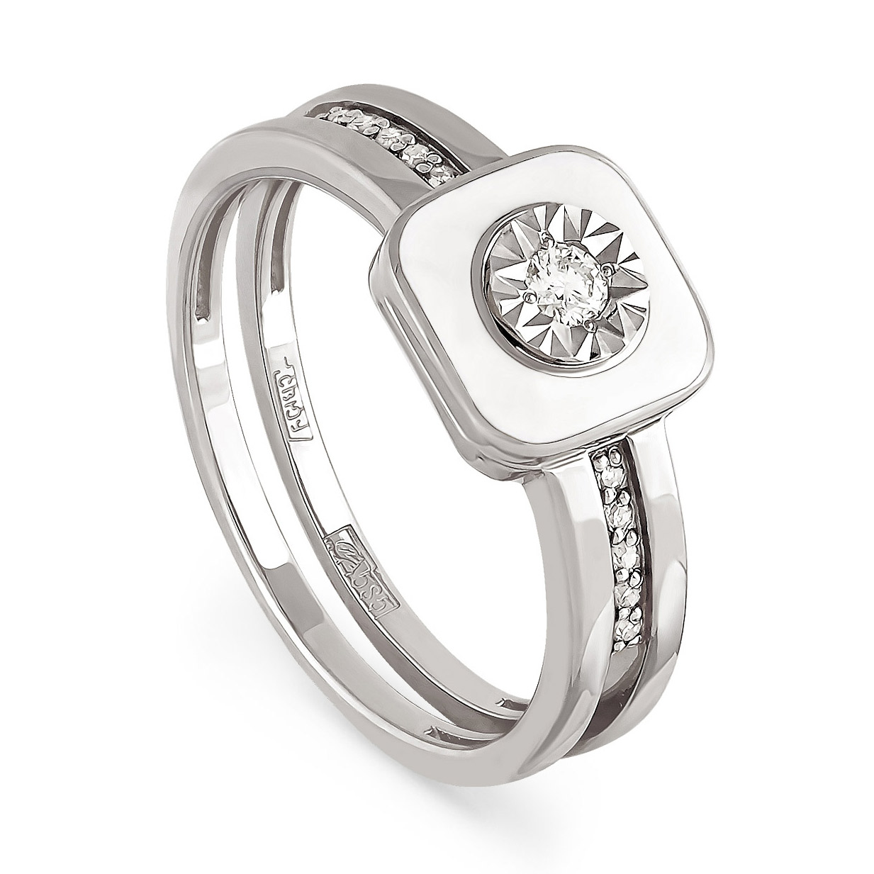 Кольцо из белого золота с бриллиантами и эмалью