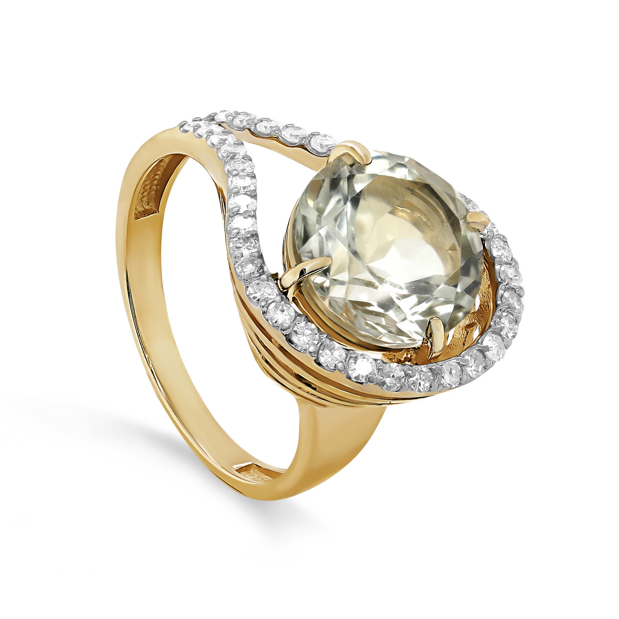 Кольцо из жёлтого золота с празиолитом и бриллиантами