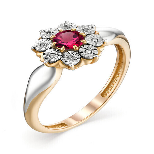 Кольцо из красного золота с рубином и бриллиантами 105206