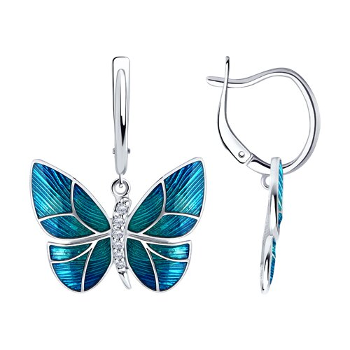 Серьги из серебра с фианитами и эмалью 121067