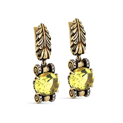 Серьги из жёлтого золота с кварцем и бриллиантами