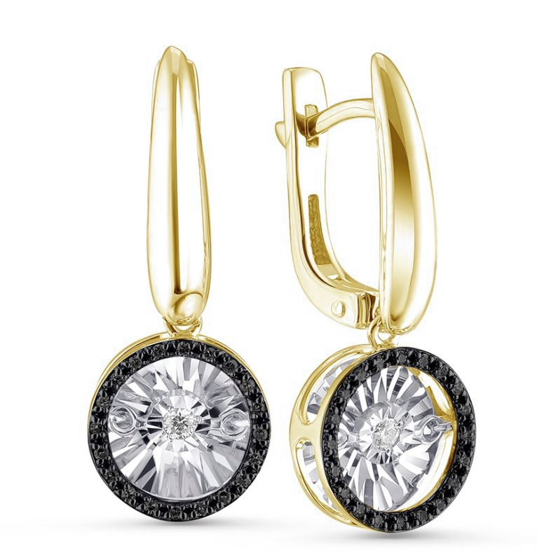 Серьги из желтого золота с чёрными бриллиантами 123076