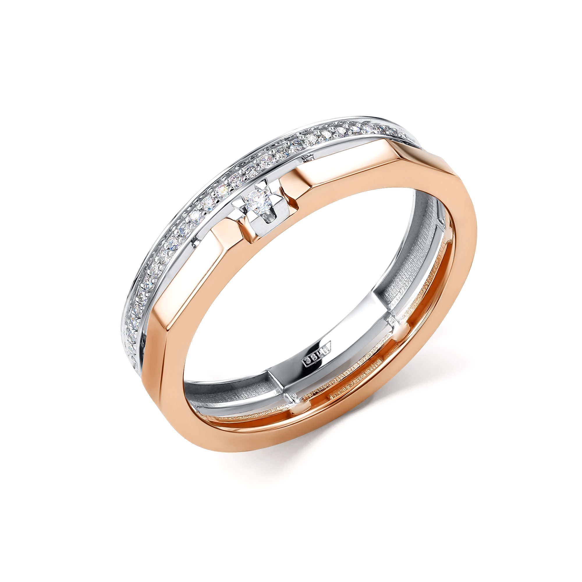 Обручальное кольцо из комбинированного золота с бриллиантами