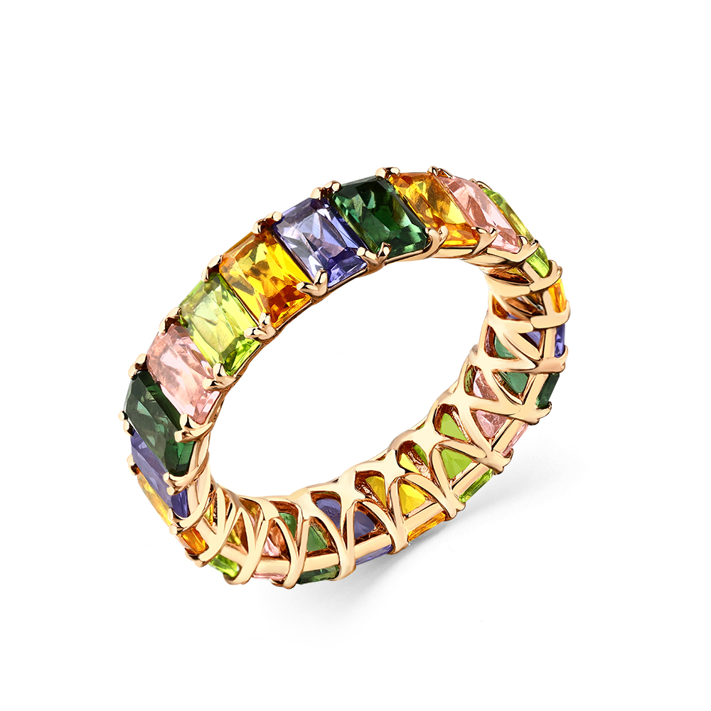Кольцо из красного золота с миксом камней