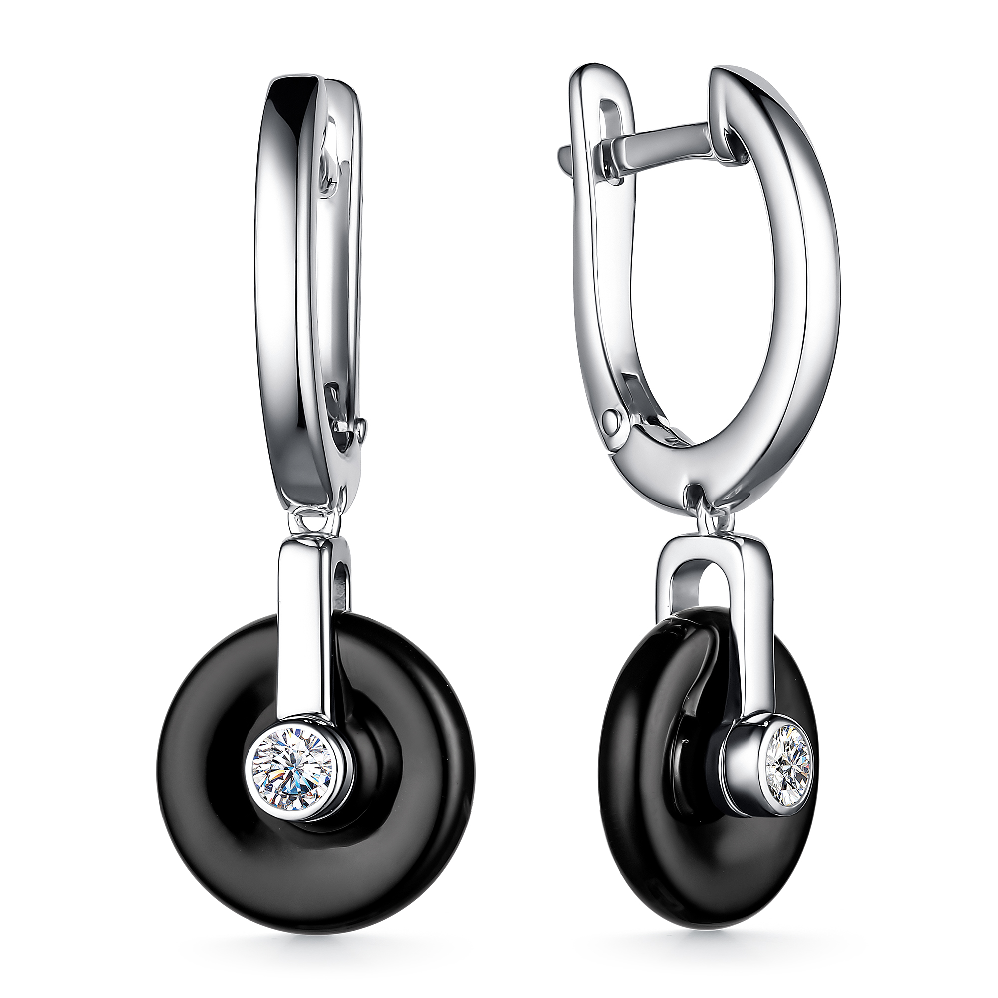 [NAME] => Серьги из серебра с черным ониксом и фианитами