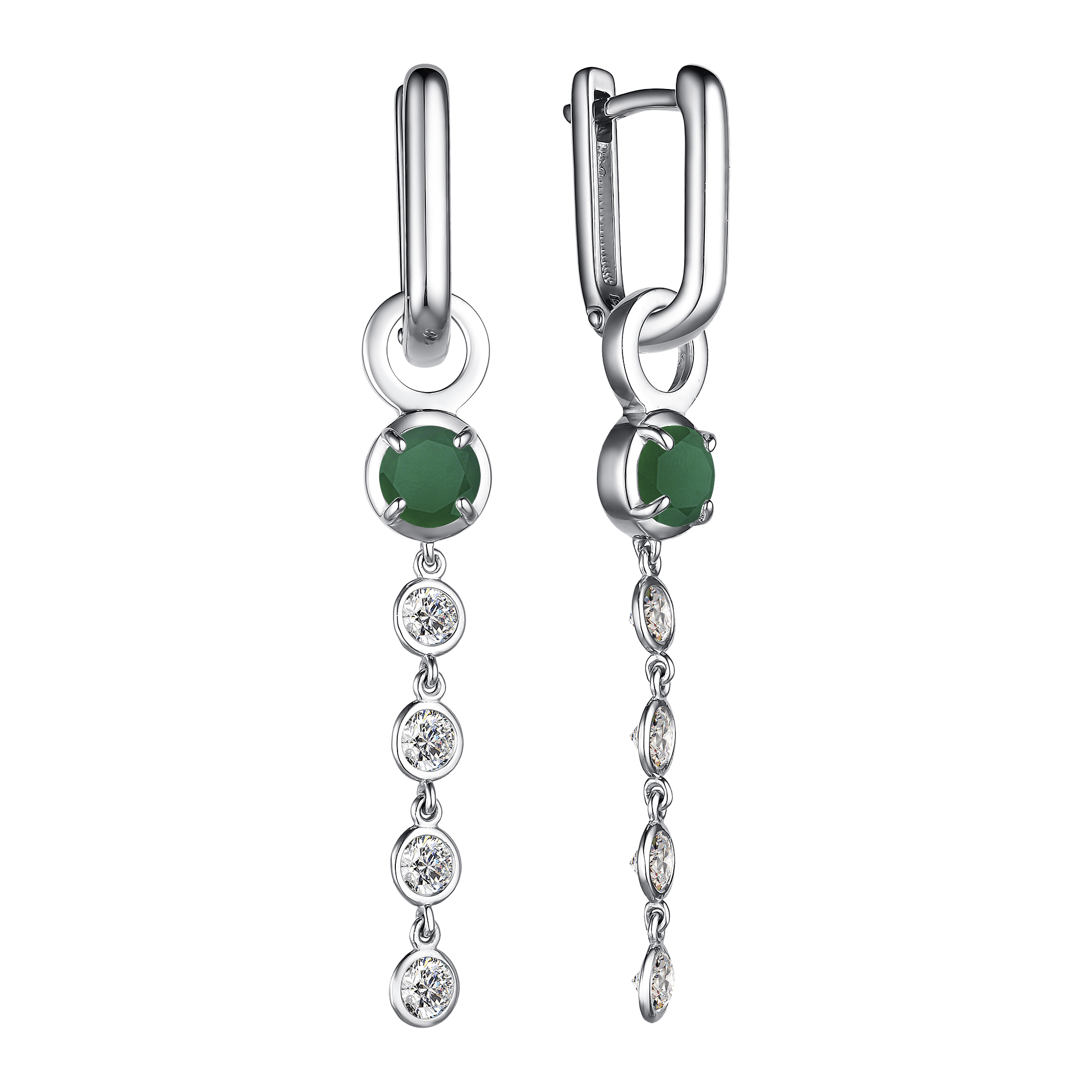Серьги из серебра с агатом и фианитами
