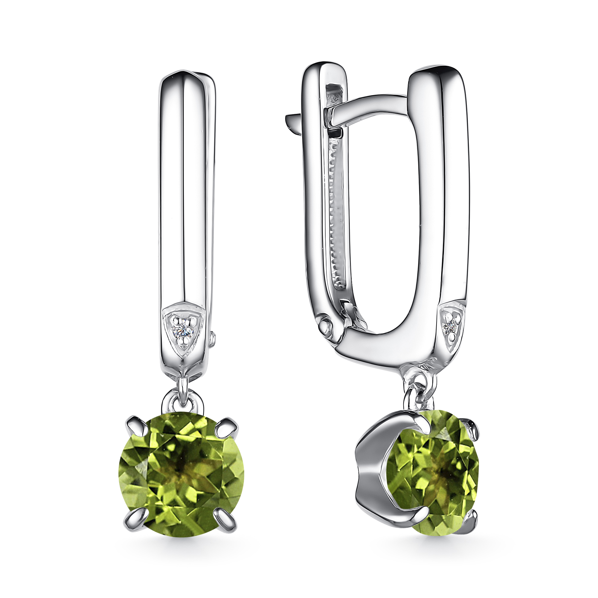 Серьги из серебра с хризолитом и бриллиантами