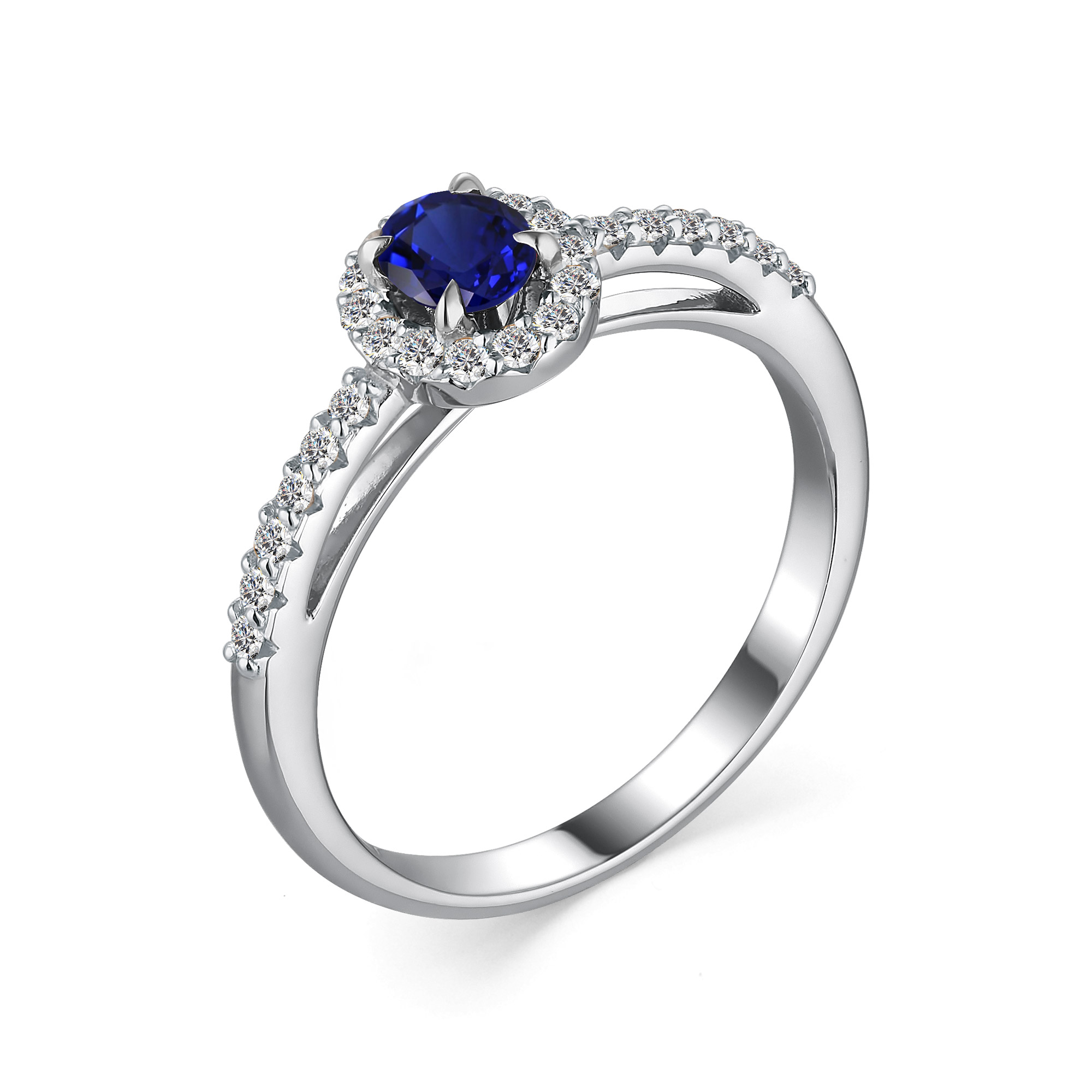 Кольцо в серебре с ГТ Сапфиром и фианитом 126901