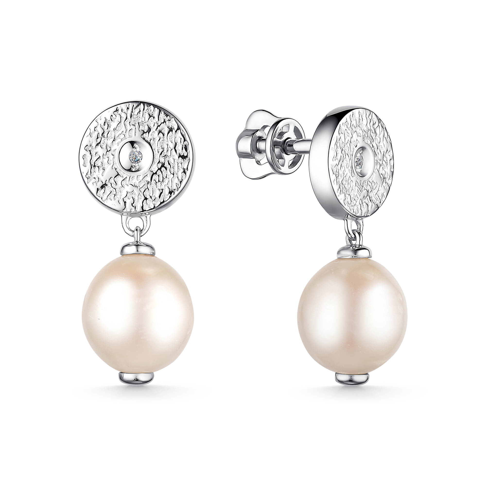 Серьги из серебра с жемчугом и бриллиантами 126944