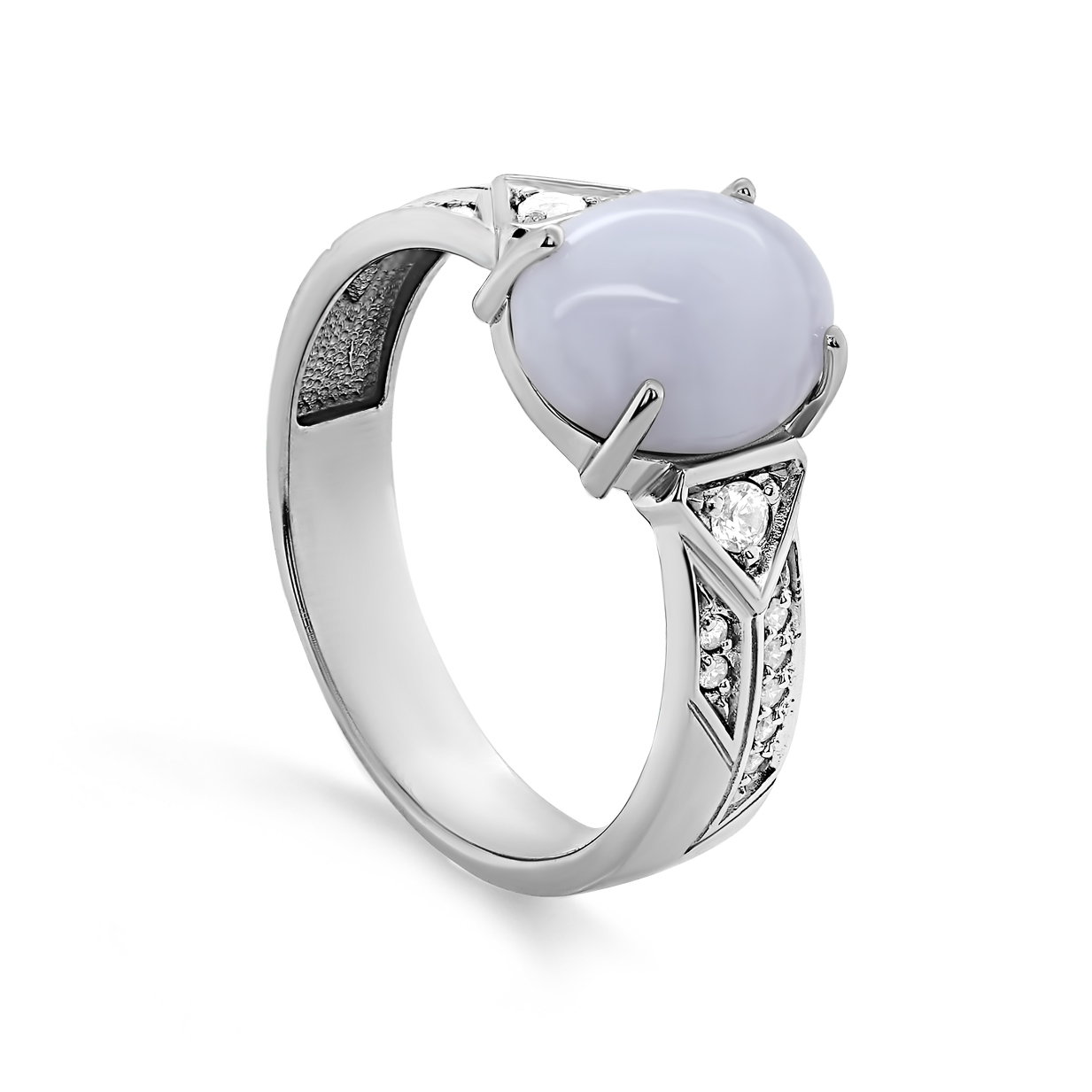 Кольцо из серебра с агатом и фианитами