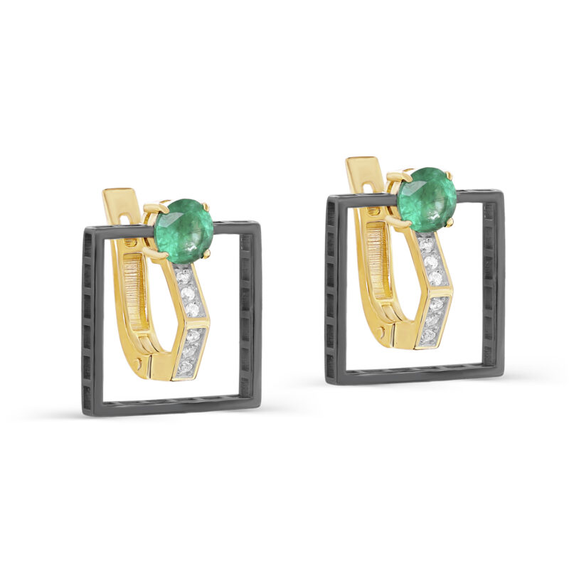 Серьги из желтого золота с бриллиантами и изумрудом 127484