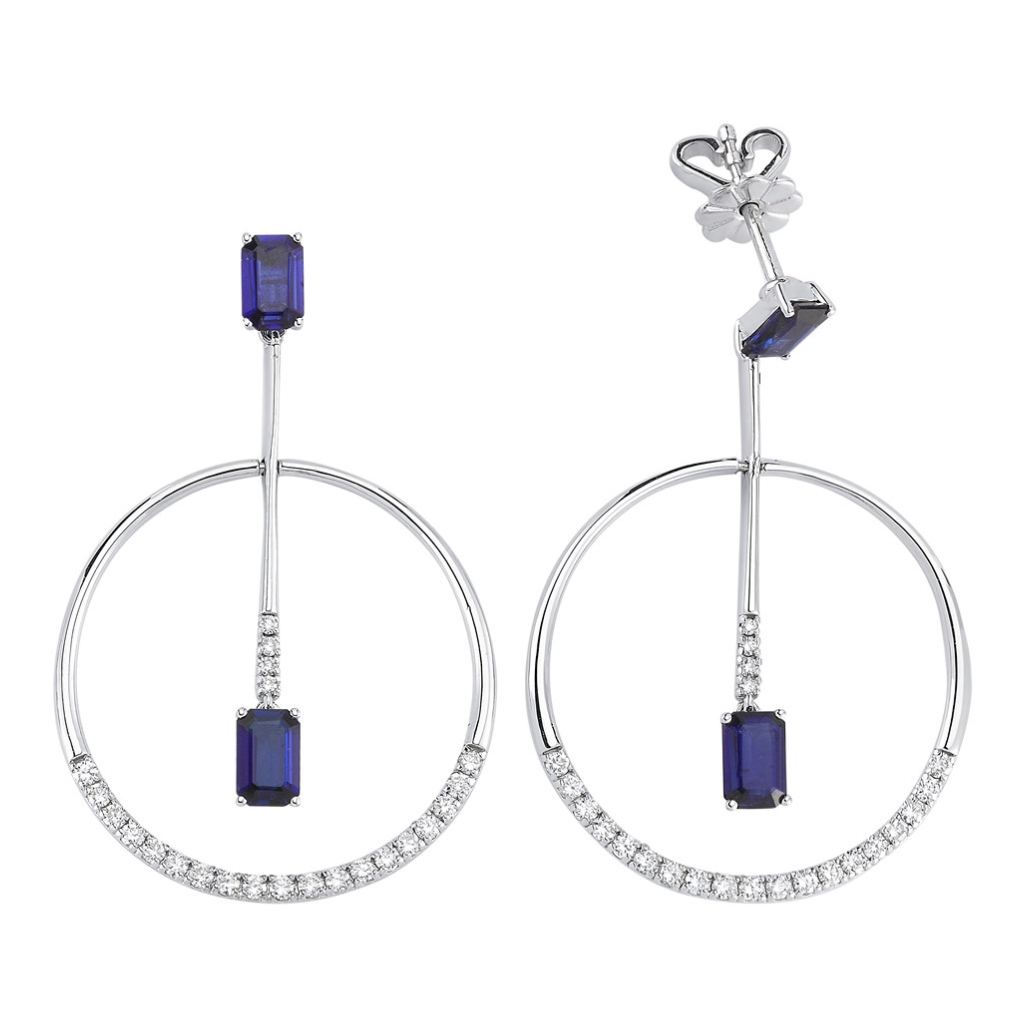 Серьги из белого золота с бриллиантами и сапфирами
