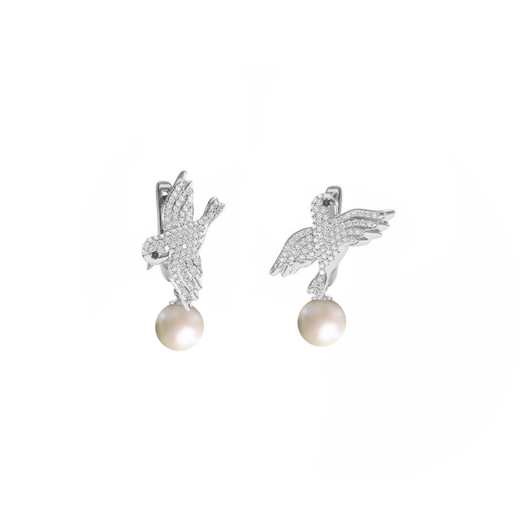[NAME] => Серьги из серебра с жемчугом и фианитами