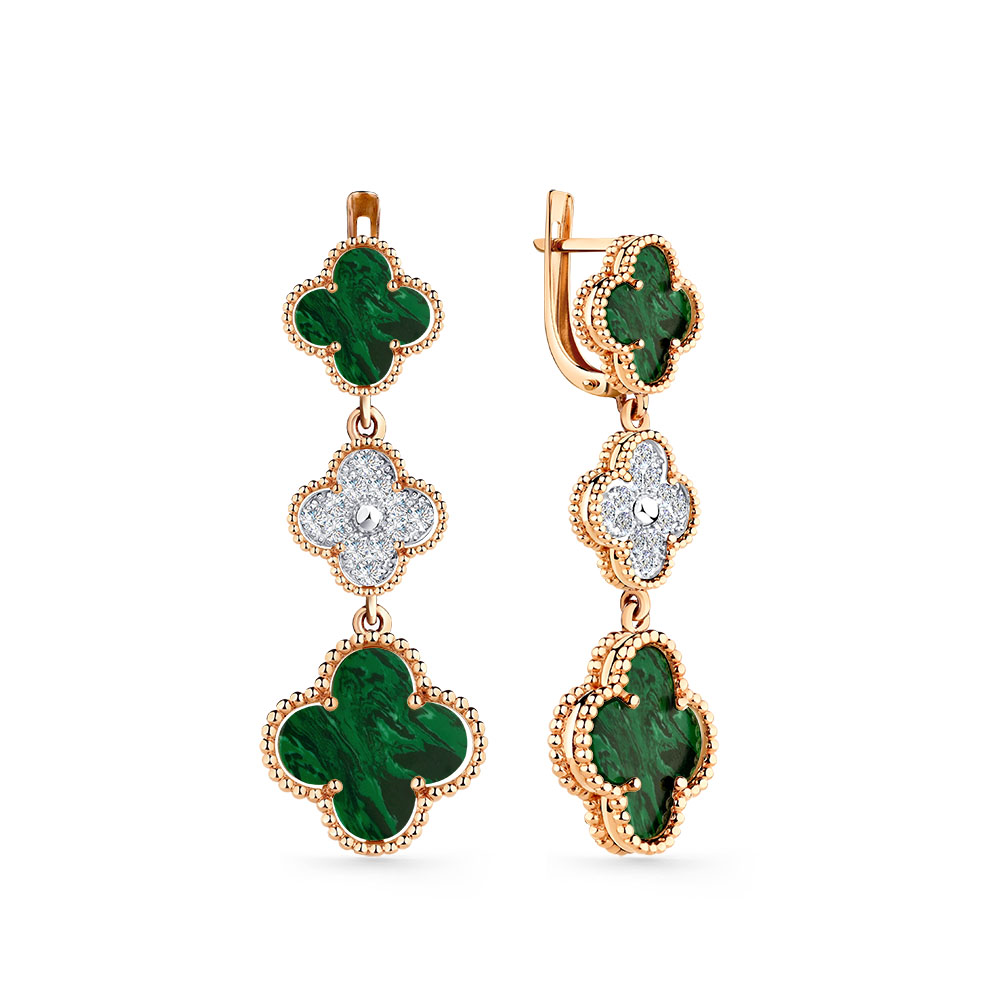 [NAME] => Серьги в красном золоте с малахитами и фианитами