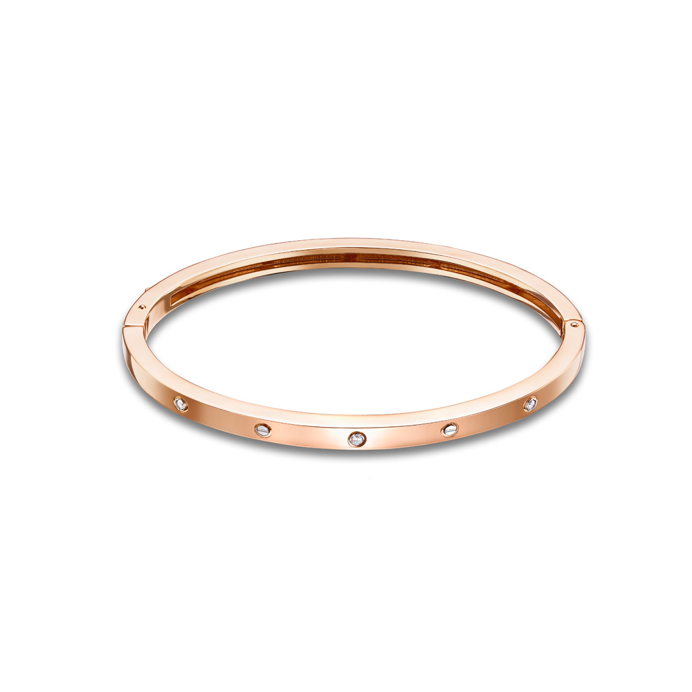 Браслет жёсткий из красного золота с фианитами