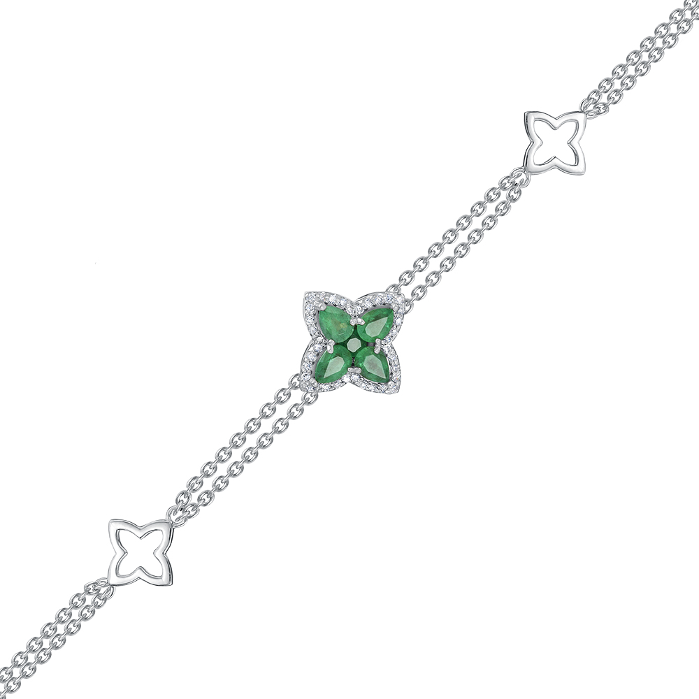 Браслет из белого золота с изумрудами и бриллиантами