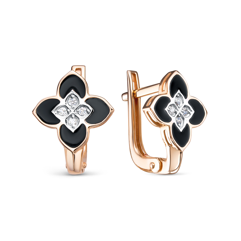 Серьги из красного золота с эмалью и фианитами 134931