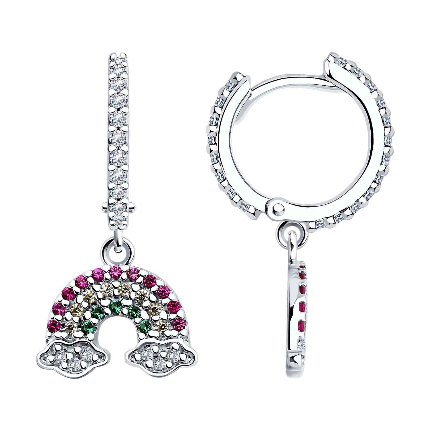 Серьги из серебра с корундами и фианитами 140715