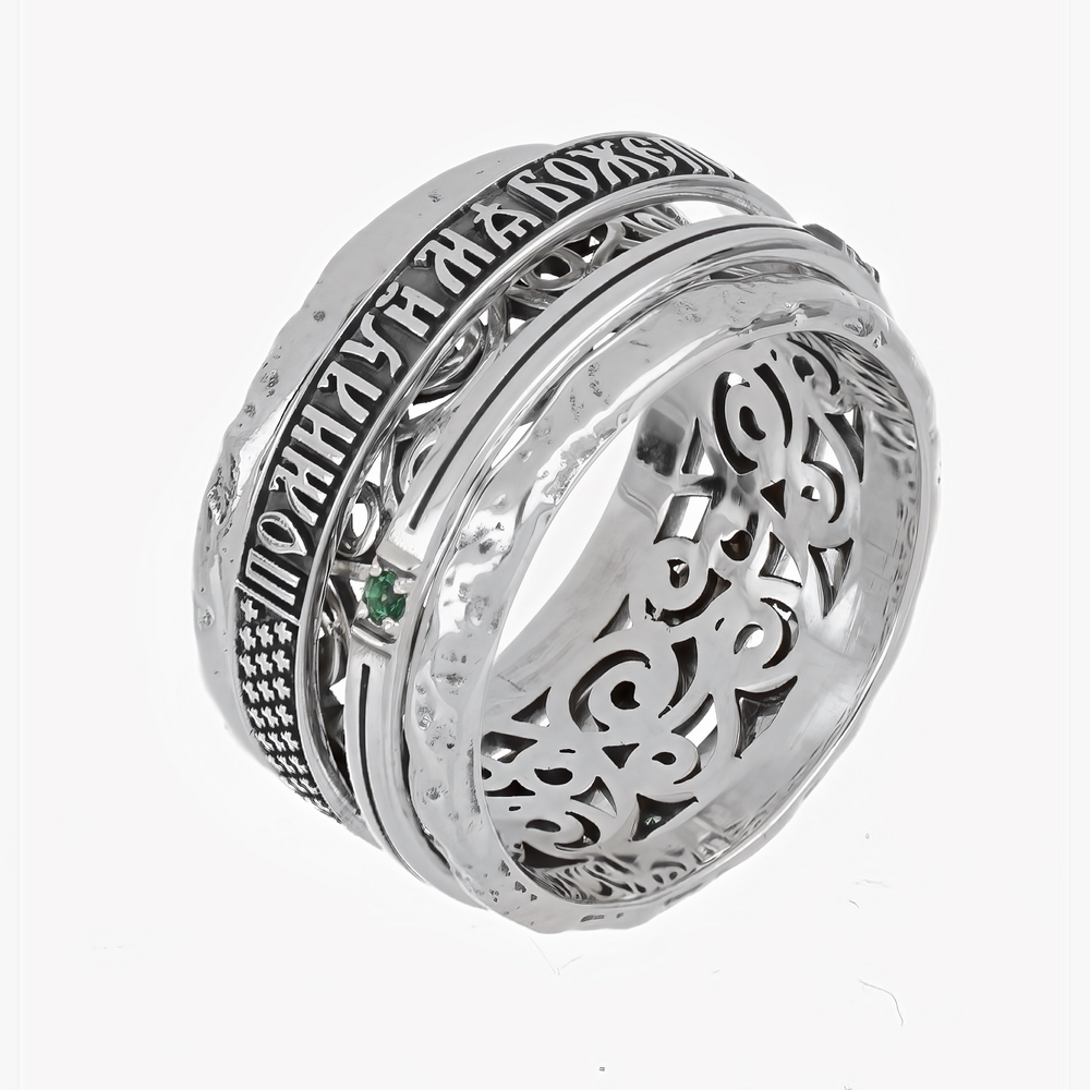 Кольцо из серебра с фианитами"Помилуй мя, Боже"