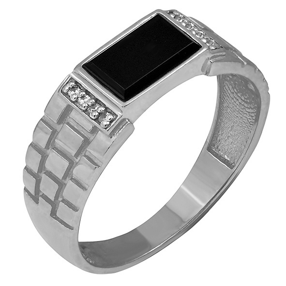 Мужская печатка из серебра с агатом и фианитами 142142
