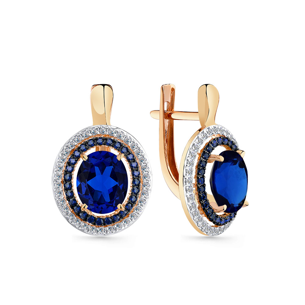 Серьги из красного золота с сапфиром синтетическим и фианитами