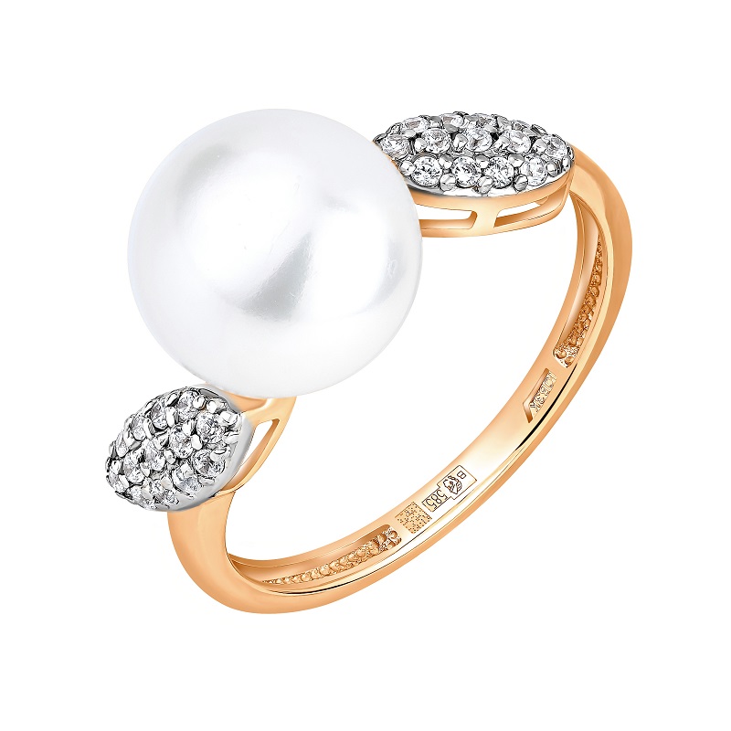 [NAME] => Кольцо из красного золота с жемчугом и фианитами