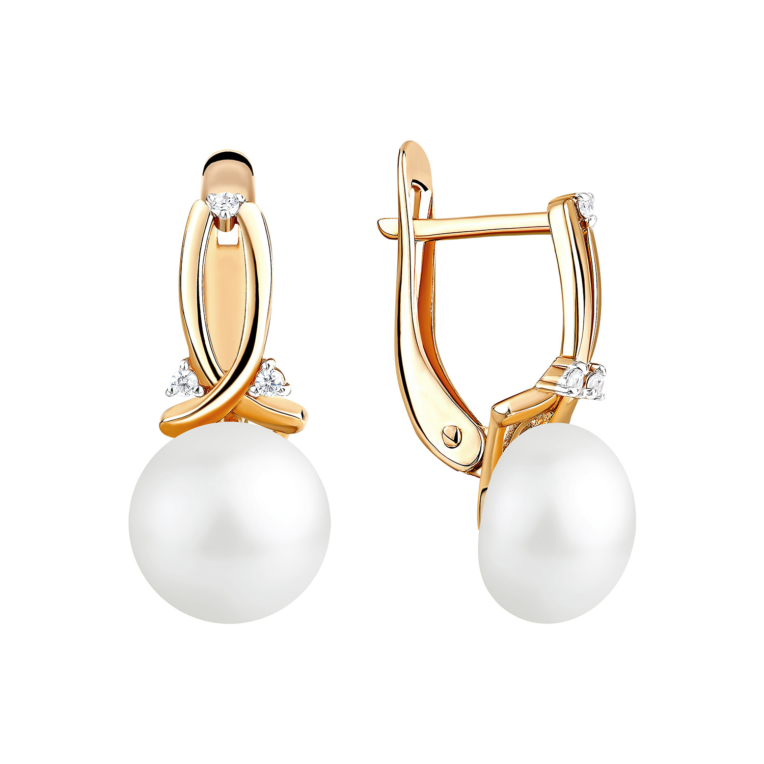 [NAME] => Серьги из красного золота с жемчугом и фианитами