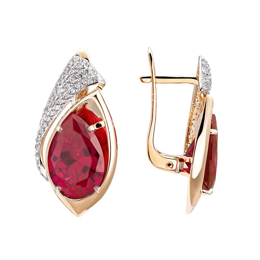 Серьги из красного золота с рубином синт. и фианитами 144530